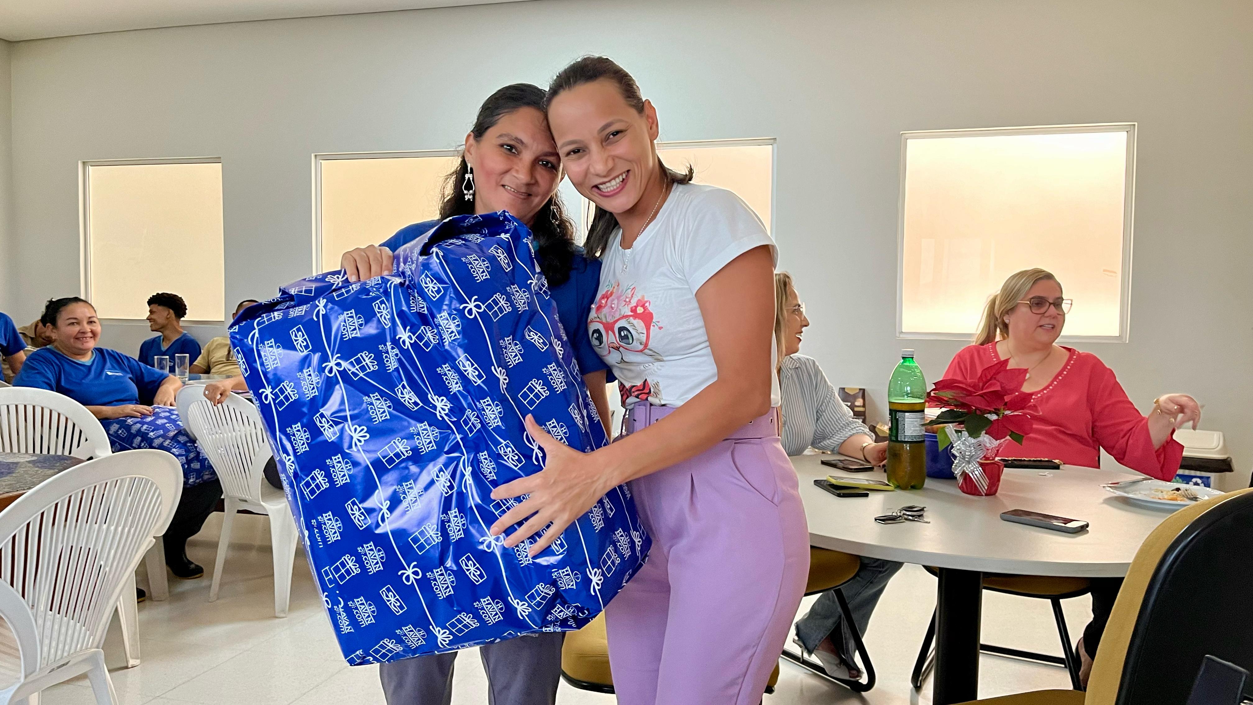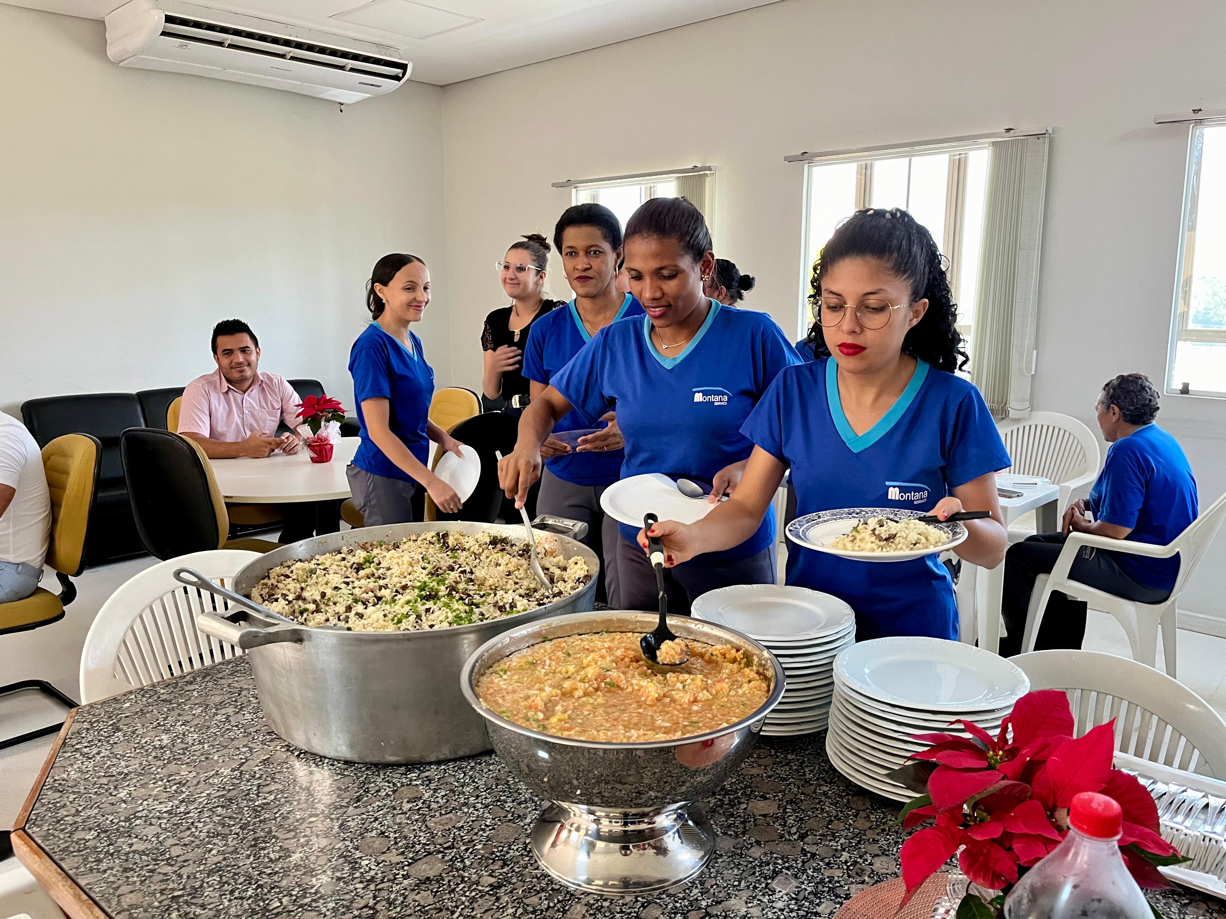 Hoje a Comarca de Palmas conta com mais de 40 colaboradores terceirizados, sendo 34 na limpeza, dez na vigilância e dois garçons. Além do almoço, refrigerante e picolé de buriti na sobremesa, também receberam uma cesta básica com panetone e participaram de um sorteio de brindes com utilidades do lar.