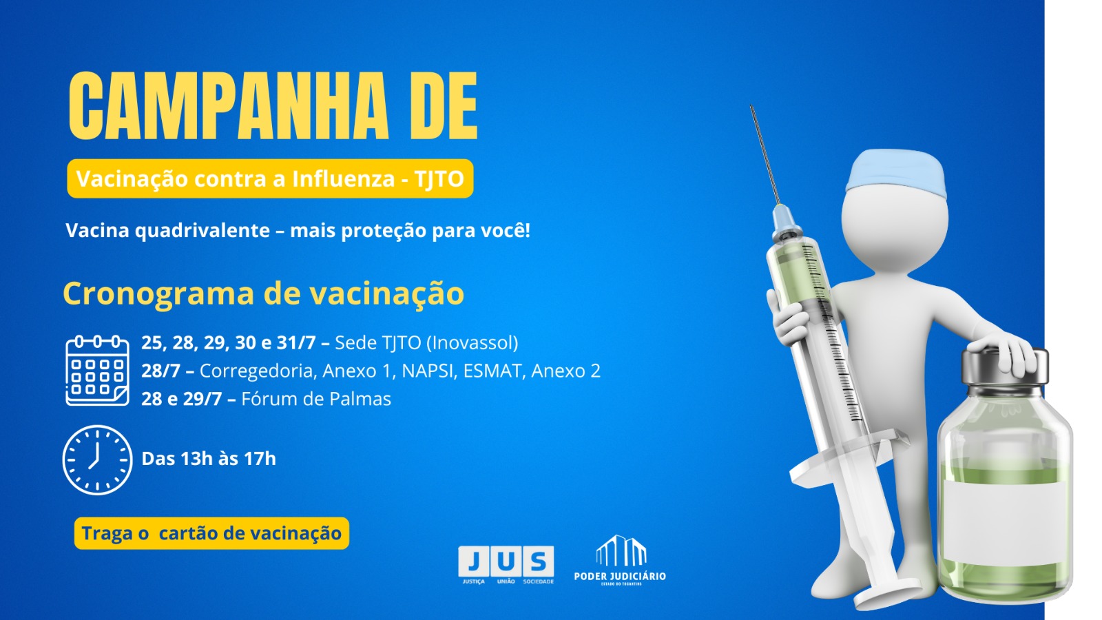 A campanha é voltada exclusivamente ao público interno do Poder Judiciário, que deverá apresentar o cartão de vacinação para o devido registro da imunização.